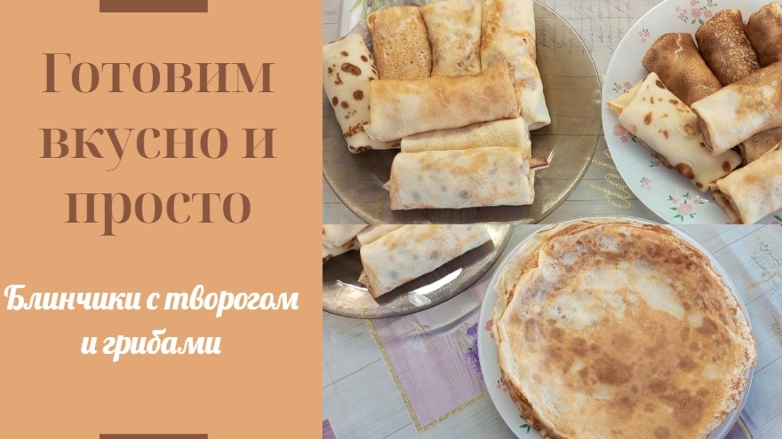 Блинчики с творогом и с грибами. Очень вкусные блины #блины#