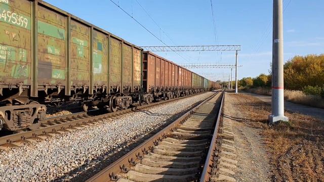 27 сентября 2020 года в 15:39 станция Самаевка Куйбышевская железная дорога empty to the East, VL10u-401 + 596 with a freight train follows Samaevka September 27, 2020 at 15:39 Samaevka station Kuibyshevskaya railway
