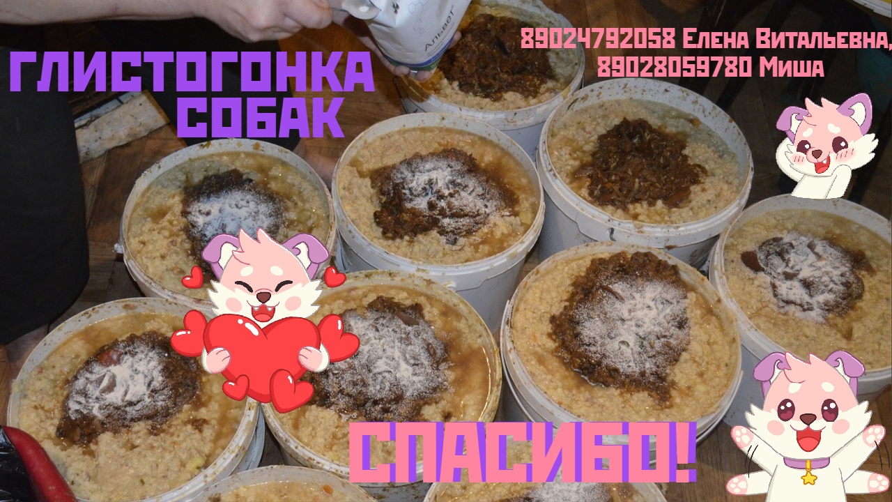 А Миша и Ивашка учуяли подвох! Наша каша была не простая, а со средством против паразитов от которых мы профилактически проводим обработу каждые полгода. Нас много и реже никак! В этот раз у нас было мало средств и мы выбрали бюджетный вариант - проглистогонили не таблетками, а порошком, тщательно перемешав его в нужной дозировке в массе каши. Поели все, кроме Миши и Ивашки. Эти два кобелька учуяли подвох и отказались кушать. Поэтому им придется покупать глистогонку в таблетках. Мы очень благодарны всем кто нас поддерживает, иначе нам не справиться! ☎ 89024792058 Елена Витальевна, 89028059780 Миша, звонить желательно вечером или писать смс. ✏ ЛС в ВК https://vk.com/lena_kozlova_perm или https://vk.com/l3adp_virusl Друзья, подписывайтесь на наших Хвостиков, дарите им репосты и не забывайте ставить лайки!