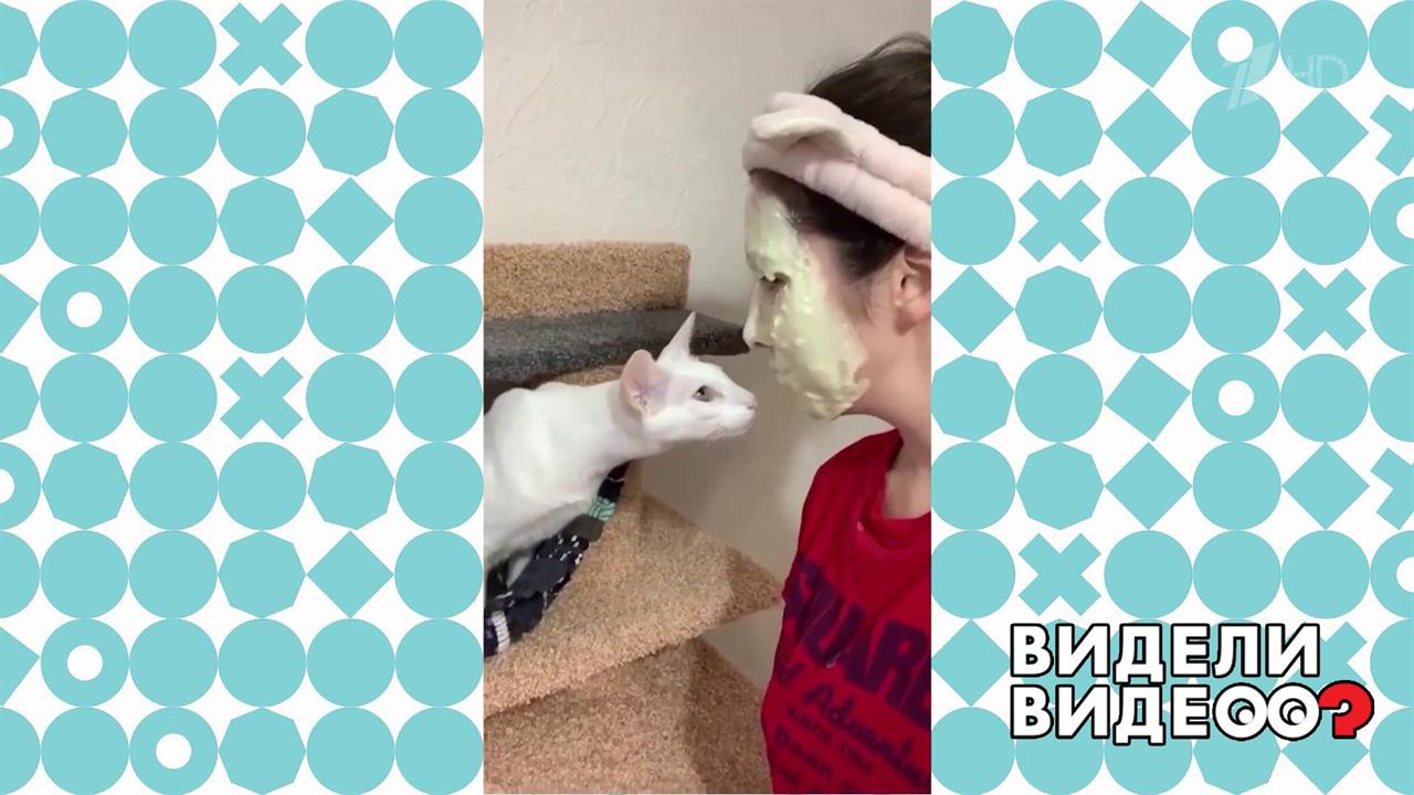 Кот не узнал хозяйку в косметической маске. Видели видео? Фрагмент выпуска от 07.02.2021