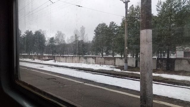 Прибытие на разъезд Генерала Омельченко (Ленинградская область, Лужский район) из окна пригородного электропоезда. Снято 24 марта 2023 г. — за окном по виду ещё практически зима. #россияизокнапоезда #ленинградскаяобласть #электричка #поезд #природароссии #лесароссии
