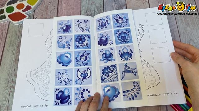 346228 Раскраска Гжельская роспись с наклейками