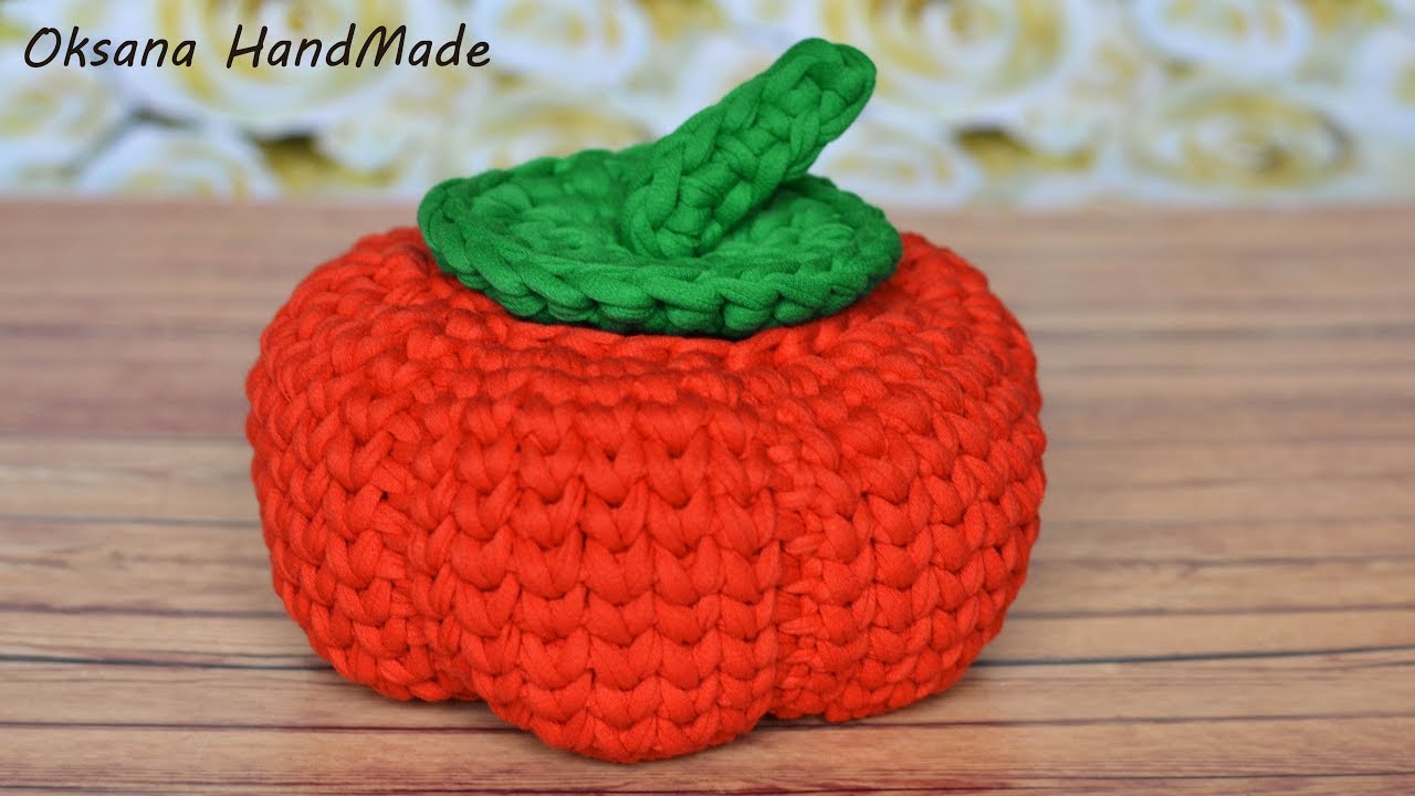 Корзина с крышкой Тыква из трикотажной пряжи. Мастер класс