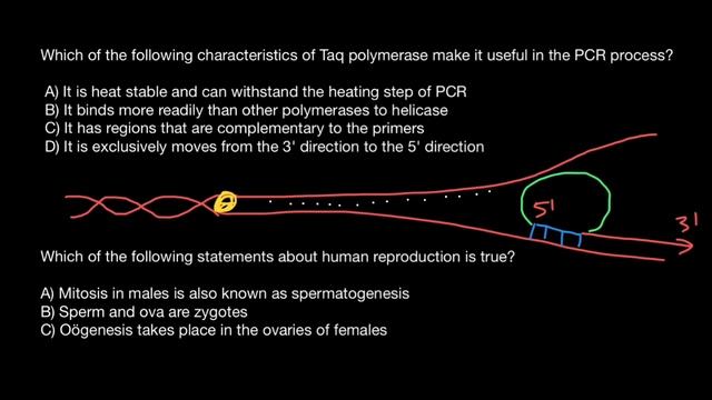 Taq polymerase is a thermostable DNA polymerase I named after the thermophilic eubacterial microorganism Thermus aquaticus, from which it was originally isolated by Chien et al. in 1976. Its name is often abbreviated to Taq or Taq pol. It is frequently used in the polymerase chain reaction (PCR), a method for greatly amplifying the quantity of short segments of DNA. T. aquaticus is a bacterium that lives in hot springs and hydrothermal vents, and Taq polymerase was identified as an enzyme able to withstand the protein-denaturing conditions (high temperature) required during PCR. Therefore, it replaced the DNA polymerase from E. coli originally used in PCR. In the early 1980s, Kary Mullis was working at Cetus Corporation on the application of synthetic DNAs to biotechnology. He was familiar with the use of DNA oligonucleotides as probes for binding to target DNA strands, as well as their use as primers for DNA sequencing and cDNA synthesis. In 1983, he began using two primers, one to hybridize to each strand of a target DNA, and adding DNA polymerase to the reaction. This led to exponential DNA replication, greatly amplifying discrete segments of DNA between the primers. However, after each round of replication the mixture needs to be heated above 90 °C to denature the newly formed DNA, allowing the strands to separate and act as templates in the next round of amplification. This heating step also inactivates the DNA polymerase that was in use before the discovery of Taq polymerase, the Klenow fragment (sourced from E. coli). Taq polymerase is well-suited for this application because it is able to withstand the temperature of 95 °C which is required for DNA strand separation without denaturing. Use of the thermostable Taq enables running the PCR at high temperature (~60 °C and above), which facilitates high specificity of the primers and reduces the production of nonspecific products, such as primer dimer. Also, use of a thermostable polymerase eliminates the need to add new enzyme to each round of thermocycling. A single closed tube in a relatively simple machine can be used to carry out the entire process. Thus, the use of Taq polymerase was the key idea that made PCR applicable to a large variety of molecular biology problems concerning DNA analysis. #NikolaysGeneticsLessons #biorad #biorad #PCR #RealTimePcr #qpcr #GeneExpression #isoThermalPcr #genomics #amplification #bioRad #polymerase #pcrPolymerase #functionOfTaq #TaqPolymerase #characteristicsOfPcr #PfuPolymerase #Taq #PCRProcedure #pcrApplications #pcrSteps #pcrDefinition #pcrTemperatures #PCRTest #pcrProtocol #DNAAmplification #PCRAnimation #template #primers #taqDNAPolymerase #PCRYoutube https://www.youtube.com/watch?v=qHFOqSVy_po