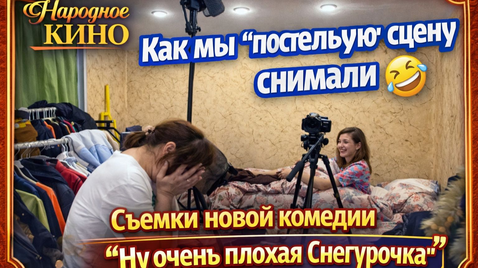 Вы думаете, «постельная сцена» — это спокойно и по сценарию? 😄 Как бы не так! На съемках «Ну очень плохой Снегурочки» всё пошло не по плану — мама с дочкой пытаются лечь спать, а вся съемочная группа буквально валится от смеха! 😂 Живые дубли, неожиданные моменты и тот самый закулисный хаос, который делает народное кино по-настоящему настоящим. Осторожно: после этого видео вы тоже будете смеяться! Смотрите скоро на нашем рутуб канале "Народное кино" премьеру новой новогодней комедии "Ну очень плохая Снегурочка!" #как_снимают_кино #смешное_видео #неудачные_дубли #смешные_моменты_со_съемок #приколы #ржач #юмор Проект "Народное кино". Подписывайтесь! Мы рады новым друзья!