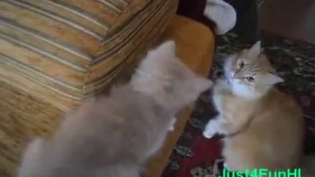 Котенок боится слезть с дивана