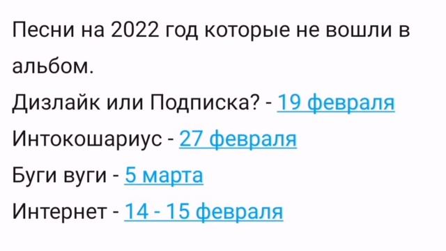 Расписание песен 2022 года которые не вошли в альбом.