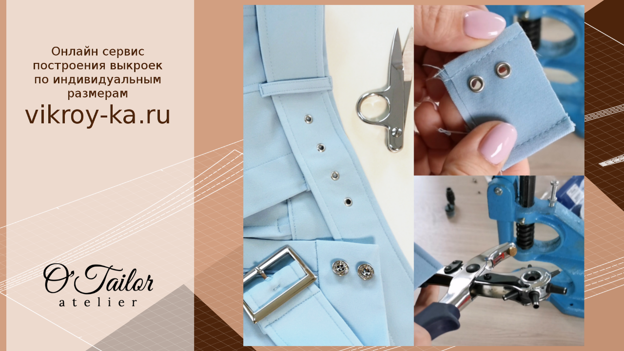 В выходные купила насадку для пресса, чтобы устанавливать люверсы самостоятельно. Люверсы для ремня можно купить разного диаметра, смотрите по пряжке. Я купила 3мм подойдут и к большим и средним и маленьким пряжкам. Купила щипцы для пробивания отверстий. Пробойники для пресса существуют, но в наличии не было и я купила щипцы диаметр отверстий от 2,5мм до 5,0мм. Люверсы можно использовать и как отделку, будет время попробуем Выкройки по вашим размерам https://vikroy-ka.ru/ -- Если вам нравиться наш блог и вы хотите поддержать его развитие - https://vikroy-ka.ru/sponsor/ -- Формируйте выкройки по своим размерам на нашем сервисе построения выкроек https://vikroy-ka.ru/ Выкройка формируется автоматически сразу после ввода размерных признаков --- Следите за новостями в соцсетях: Телеграм: https://t.me/vikroyka_service Телеграм чат: https://t.me/vikroyka_chat ВКонтакте: https://vk.com/otailor Одноклассники: https://ok.ru/group/54312598044746 Яндекс.Дзен: https://zen.yandex.ru/vikroyka Pinterest: https://www.pinterest.ru/vikroyka/ Youtube https://www.youtube.com/c/Vikroyka RuTube https://rutube.ru/channel/23321427/