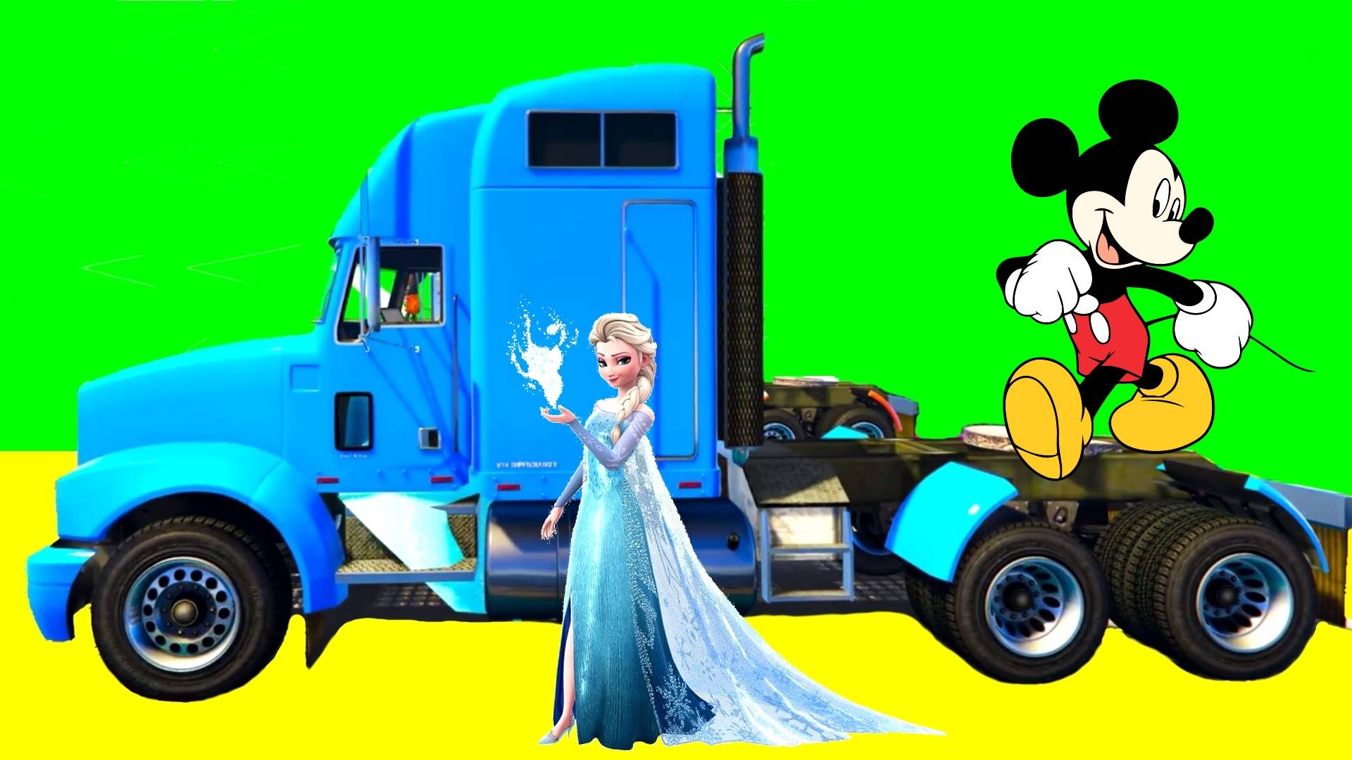 Эльза и Микки Маус с Цветными Грузовиками и Тракторами для детей Мультики для детей и малышей