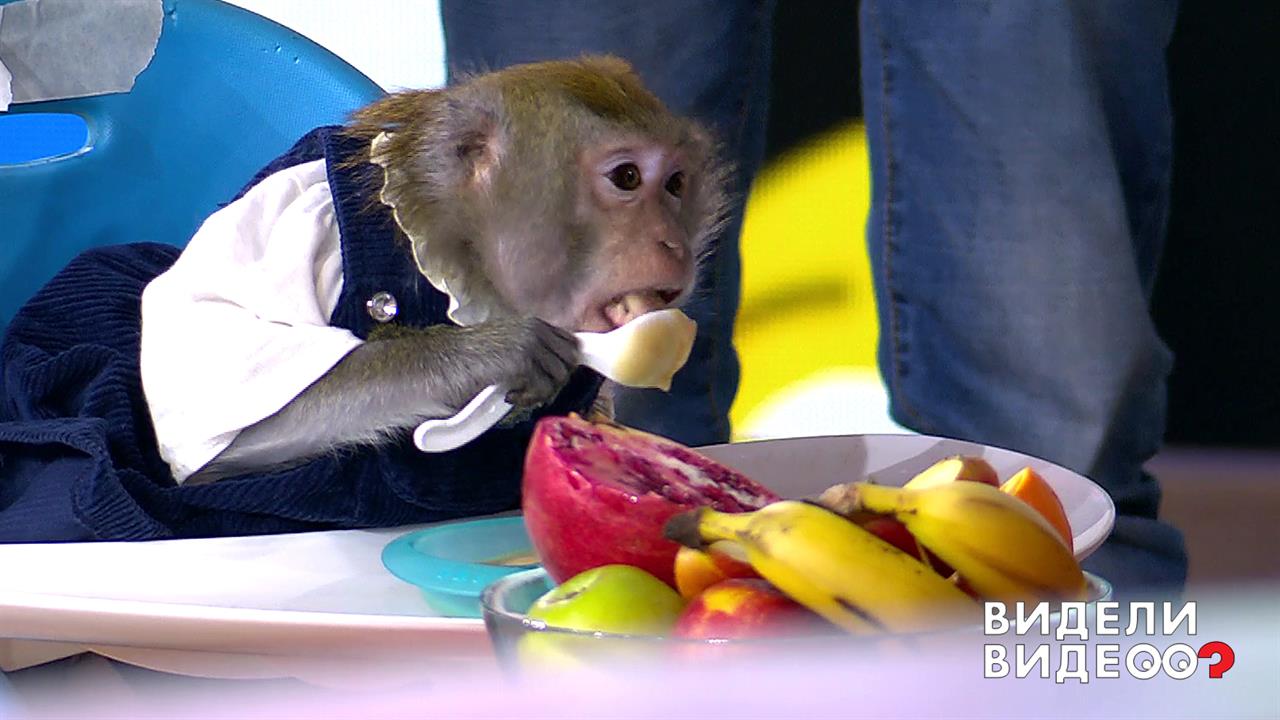 Номинация "Сами с усами". Герои видеоролика — обезьяны Маша и Семен и их хозяйка Светлана Кропочева из Обнинска. Как Маша и Сема научились есть ложкой и что входит в их рацион?
