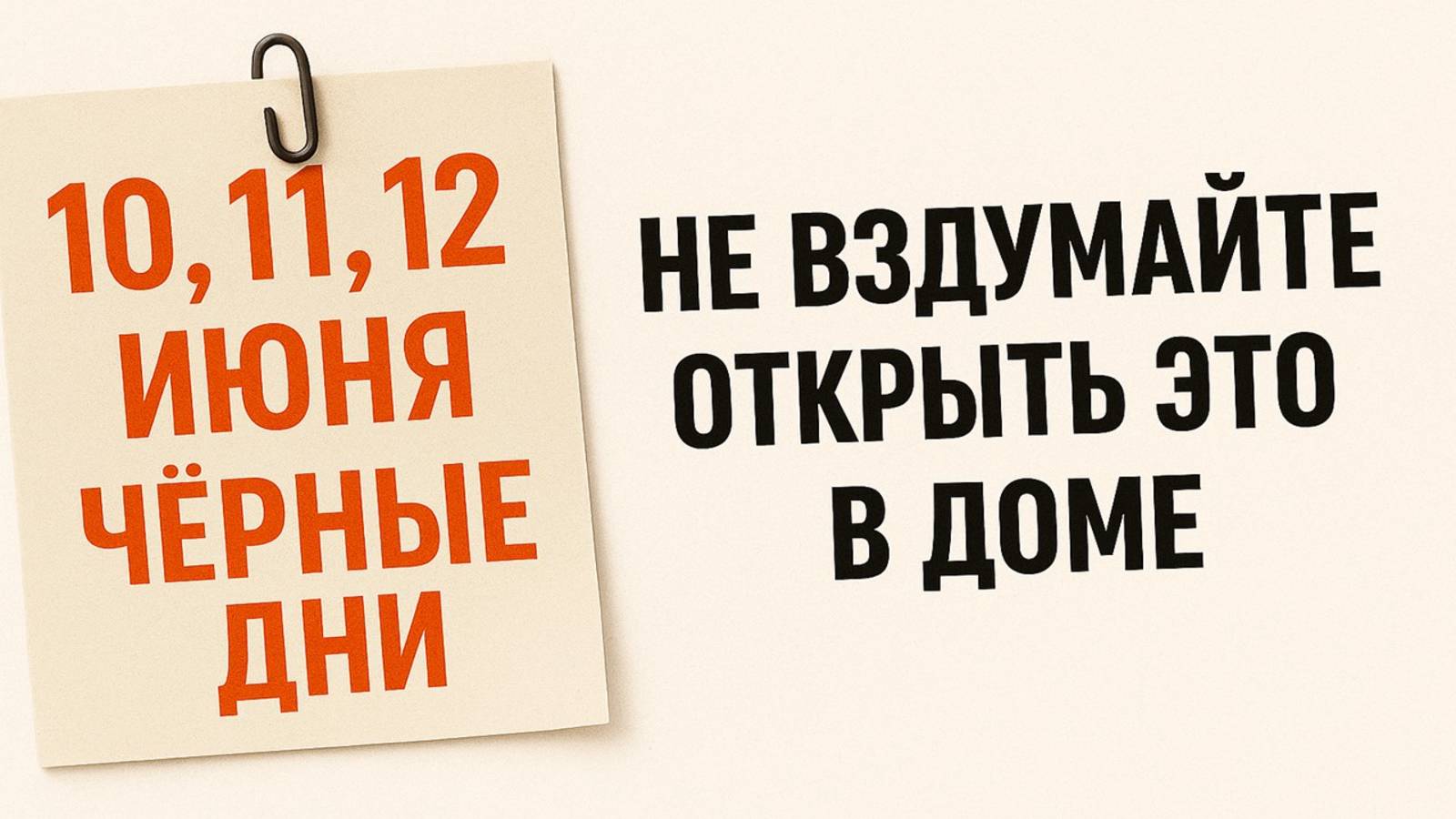 10 июня, 11 июня и 12 июня — это особые даты, которые называют чёрными днями. В эти дни нельзя открывать ничего в доме: двери, окна, ящики, шкафы. Любое открытие в эти три дня способно впустить в дом беду, лишения, болезни и финансовые потери. В этом видео я подробно расскажу, что именно нельзя открывать 10, 11 и 12 июня, какие приметы и ритуалы помогут защитить дом и семью, как правильно использовать соль, воду и слова, чтобы укрепить энергетическую защиту. Вы узнаете, почему эти дни такие опасные, как почувствовать присутствие незримых сил в доме, какие ошибки могут открыть путь беде и что делать, если уже нарушили древние правила. Я поделюсь проверенными ритуалами и сильными словами, которые веками защищали дома наших предков. Услышите секреты древнего знания, которое помогает остановить любой негатив и закрыть путь силам тьмы. Обязательно досмотрите видео до конца: здесь Вы найдёте практические советы, которые работают именно в эти три дня. Не забудьте поставить лайк — он станет Вашим оберегом, а в комментариях напишите «Мой дом защищён!», чтобы слова обрели силу и защитили Ваш дом. Поделитесь видео с друзьями, чтобы и их дома были под надёжной защитой. Пусть каждый день в Вашем доме будет наполнен светом, миром и достатком!