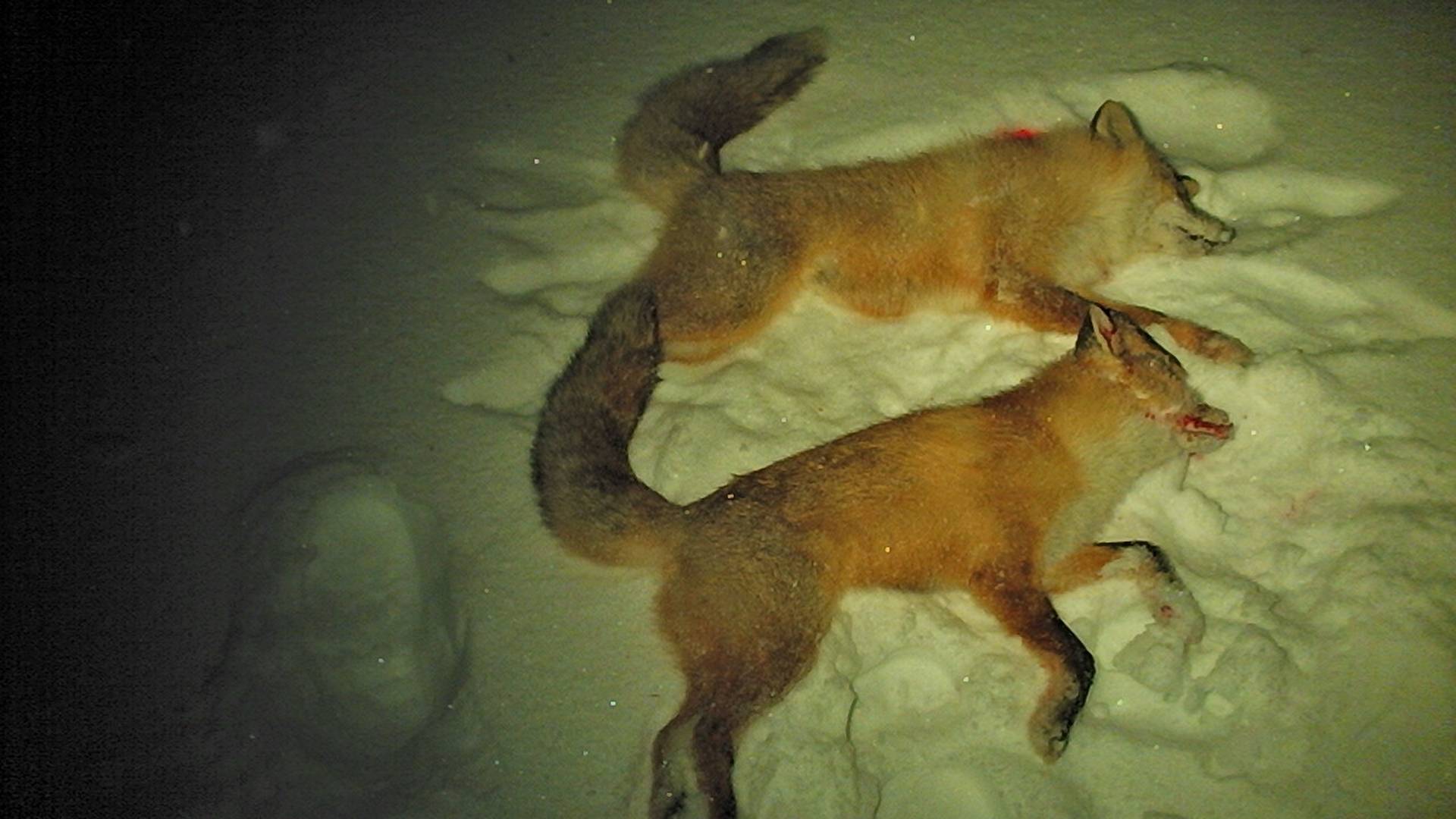 Две лисы. Охота из засидки. Гон у лис в самом разгаре