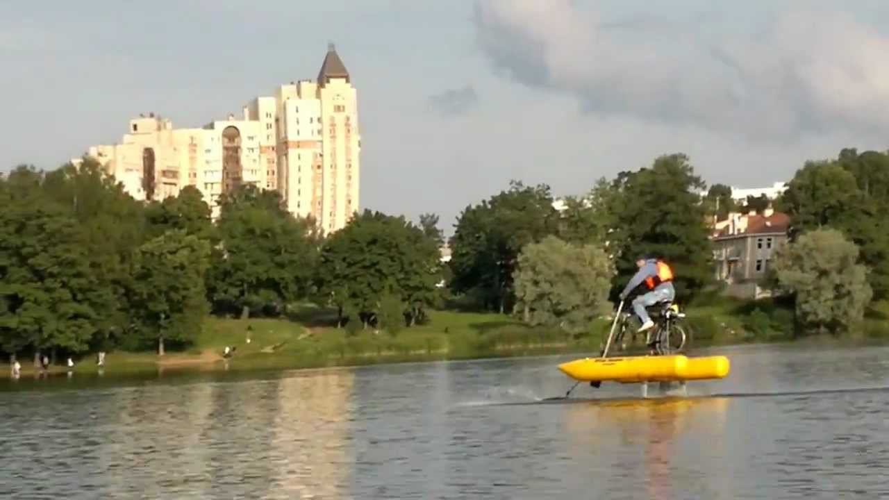 Начались систематические испытания навесного водного оборудования на мотовелосипед Комета. Комплекс представляет из себя амфибию.