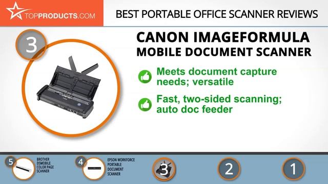 Our trained experts have spent hours researching the best Portable Office Scanners available on the market. In order to save you both time and money, we’ve narrowed the field down to some of the best Portable Office Scanner brands. Check out an in-depth review on TopProducts.com: Best Portable Office Scanner Reviews - http://topproducts.com/reviews/best-portable-office-scanner.htm A portable office scanner can prove to be a real lifesaver in a pinch—imagine being able to scan documents while away from the home or office! If you’re interested, you’ve come to the right place. Our team has put together this master list of the top five portable office scanners out there. Each one has different features, but are still affordable and of high quality. Whatever you’re looking for in a portable scanner, you’re sure to find it here. In this video, you will learn about the features, pros and cons for our picks for the top Portable Office Scanners. Our experts have chosen a wide range of products that can fit every budget, from top-of- the-line to budget friendly. This video includes: • Doxie Go Mobile Office Scanner Review • Fujitsu ScanSnap Mobile Scanner Review • Canon imageFORMULA Mobile Document Scanner Review • Epson WorkForce Portable Document Scanner Review • Brother DSmobile Color Page Scanner Review At TopProducts, our goal is to help make your buying decisions quick and easy. If you found this video useful, check out our other reviews, and subscribe to our channel! Like us on Facebook! https://www.facebook.com/topproductscom/