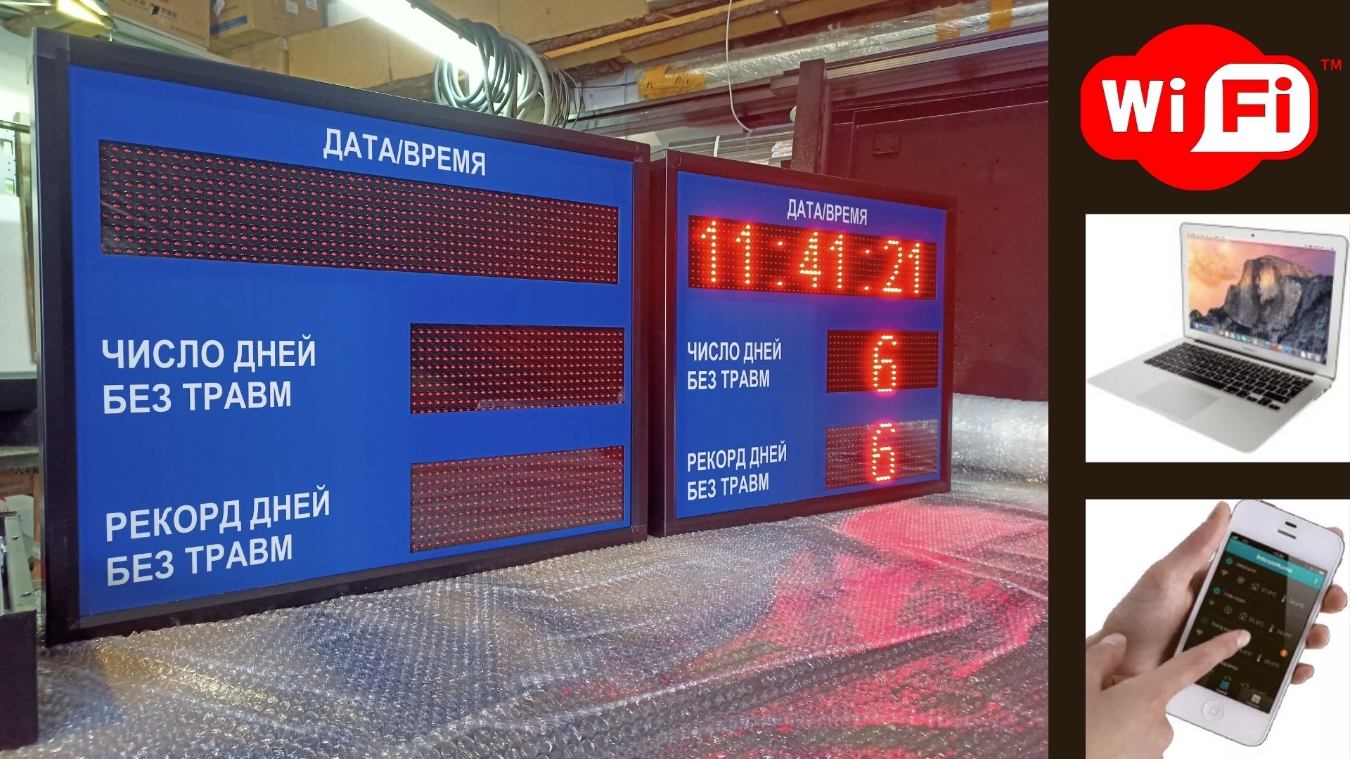 Электронное табло "число дней без травм и рекорд дней без травм" 530*690мм производство в Тюмени.