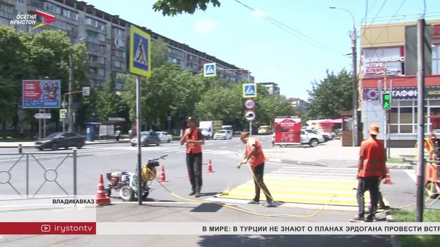 Во Владикавказе продолжают наносить свежую разметку
