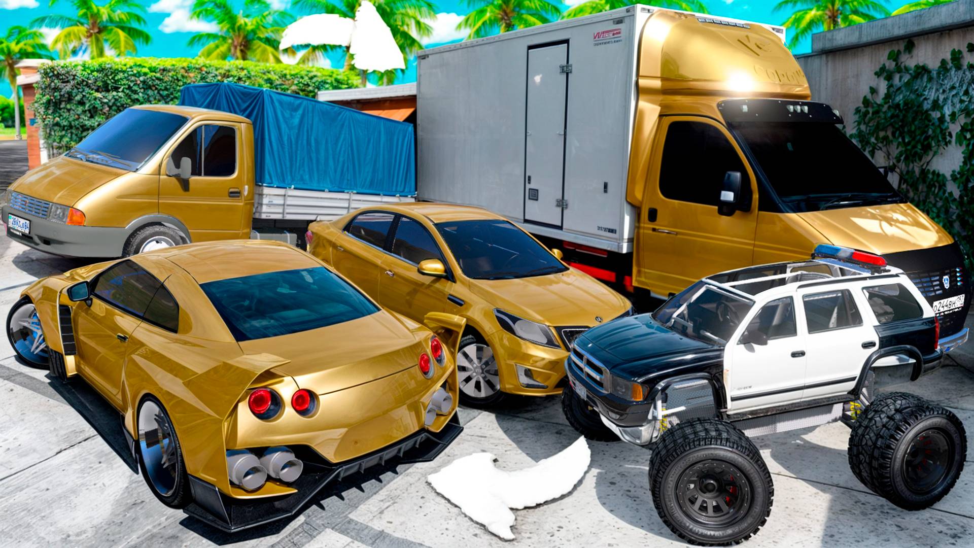 Угнал кучу золотых чит тачек и огромный монстр трак у мажора за 180 сек! Битва воров в ГТА 5 Онлайн