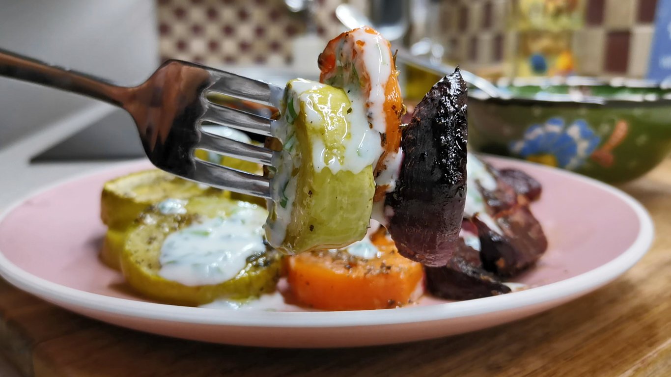 Эти очень простые овощи могу готовить и есть хоть каждый день. Подаю в разных вариантах - и горячие как гарнир, и холодные как закуску. А особенно вкусно есть эти овощи с соусом. Мои любимые овощи в духовке - кабачки, морковка и свекла, готовить очень просто и нравится всей семье. Ингредиенты: Кабачки - 350 гр Морковь - 350 гр Свекла - 350 гр Соль, перец - по вкусу Ароматные травы - 1 ч.л. или по вкусу Растительное масло - 3 ст.л. или по вкусу для соуса Мацони - 300 гр (или сметана, или йогурт) Чеснок - 1-2 зубчика Соль, перец - по вкусу Кинза - 1/2 пучка (или петрушка, или укроп) *********************************** Одноклассники https://ok.ru/group/60739114565686 ВКонтакте https://vk.com/club194110412 Яндекс Дзен https://zen.yandex.ru/rozovybaklazan Ютуб https://www.youtube.com/@rozovybaklazan *********************************** Музыкальная композиция: Jazzeton Автор: Quincas Moreira Ссылка на исполнителя: https://www.youtube.com/channel/UCL1zFMJb0sthwdAlGjGbdyg Музыка, продвигаемая музыкальной библиотекой Happy Soul Music Library https://happysoulmusic.com https://happysoulmusic.com/audio/jazzeton_-_quincas_moreira-mp3/ #кабачки #свекла #морковь #овощивдуховке #рецептыизовощей #постныерецепты #рецептыбезмяса #запеченныеовощи #соус #рецепты #еда #кулинария #какприготовить #новыйрецепт #простойрецепт