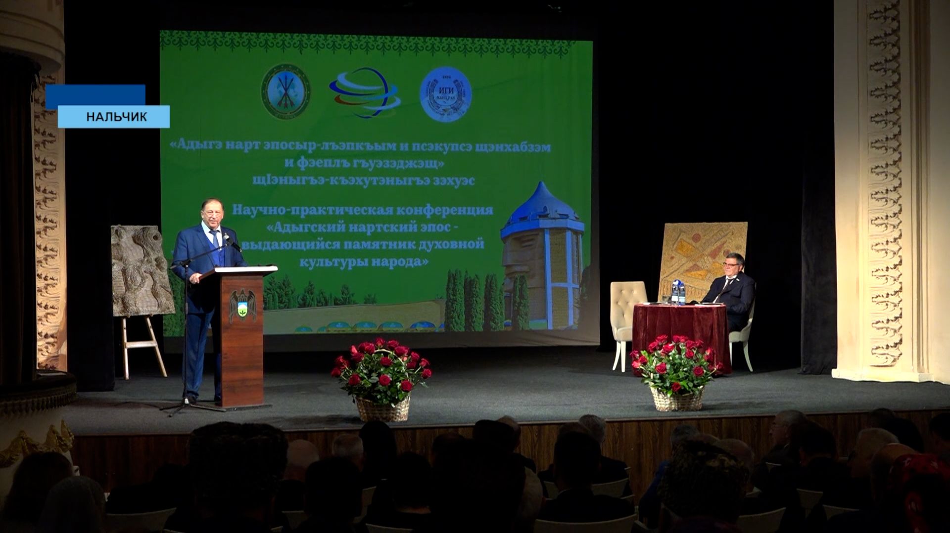 Заседание Исполкома Международной Черкесской Ассоциации продолжилась научно-практической конференцией «Адыгский нартский эпос - выдающийся памятник духовной культуры народа». Эпос начал формироваться в VIII 8–VII 7 веках до нашей эры. Часть учёных утверждает, что истоки сказаний восходят к III тысячелетию до нашей эры. Основу «Нартов» составляют сказания о происхождении и приключениях героев-богатырей. Существует эпос в прозе и стихах. Большая часть сохранившихся произведений зафиксирована в поэтической форме, при этом почти всегда у каждой песни существует своя характерная мелодия. Визуальный ряд представляют работы известного художника-графика Заурбека Бгажнокова. Приветствовал гостей конференции президент МЧА Хаути Сохроков. А участие в ней приняли представители ассоциации ряда регионов России и зарубежных стран. В программе - выступления и доклады видных экспертов.