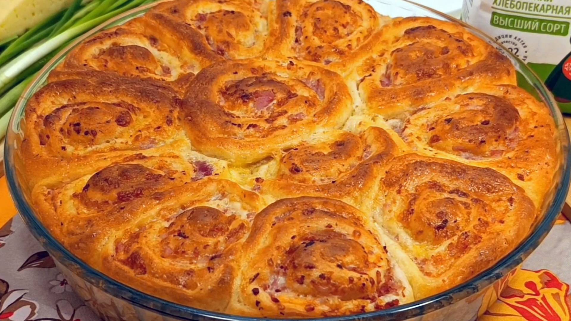 Здравствуйте дорогие друзья! Сегодня мы с вами приготовим необыкновенно вкусный и нежный пирог-улитку с ветчиной и сыром. Гости и друзья будут в полном восторге от такого пирога. Готовим необыкновенно вкусный и нежный пирог-улитку с ветчиной и сыром. Гости и друзья будут в полном восторге от такого пирога. Время приготовления: 2 часа. Ингредиенты: 600 г муки ТМ «Алейка», от щедрых полей Алтая, 300 мл теплого молока, 200 г ветчины, 200 г любимого твердого сыра, 4-5 ст. ложек натурального подсолнечного масла ТМ «Алейка», 2 ст. ложки сахара, 30 г сливочного масла, 1 яйцо, 1 ч. ложка сухих дрожжей, 1/2 ч. ложки соли. Приготовление: 1. В миску разбить 1 куриное яйцо и добавить 1 столовую ложку молока. Хорошо перемешать. 2. В большой миске смешать 300 миллилитров теплого молока, 1 чайную ложку сухих дрожжей и 2 столовые ложки сахара. Перемешать и оставить на 15 минут. 3. Перемешать содержимое миски и добавить 1/2 чайной ложки соли. Добавить 3 столовые ложки натурального подсолнечного масла ТМ «Алейка» и хорошо перемешать. Частями добавить 600 грамм муки ТМ «Алейка» и замесить тесто. 4. Чистую миску смазать 1 столовой ложкой натурального подсолнечного масла ТМ «Алейка». Выложить тесто. Смазать тесто сверху подсолнечным маслом. Накрыть пищевой пленкой и оставить на 1 час. 5. 200 грамм любимого твердого сыра натереть на крупной терке. 200 грамм ветчины натереть на крупной терке. Перемешать сыр с ветчиной. 6. Тесто обмять руками. Раскатать тесто в тонкий пласт. Смазать растопленным сливочном маслом. 7. Выложить в один слой сыр с ветчиной. Скрутить тесто рулетом. Защипнуть край. Смазать оставшимся растопленным сливочным маслом весь рулет. Разрезать рулет на части. Форму для выпечки немного смазать сливочным маслом и выложить заготовки для пирога плотно друг к другу. Оставить на столе на 30 минут. 8. Смазать тесто сверху смесью яйца с молоком. Выпекать пирог в разогретой до 180 градусов Цельсия духовке 30-35 минут. 9. Вынуть пирог из духовки и остудить. 10. Пирог Улитка с ветчиной и сыром готов. Можно подавать к столу. Понравился рецепт, ставьте лайк! Чтобы не потерять, добавляйте его к себе в избранное, оставляйте комментарии и пожелания. Приятного аппетита!