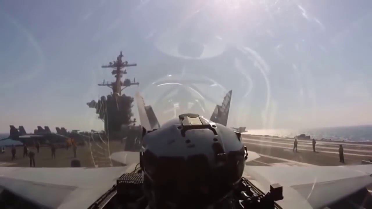 ВЗЛЕТ самолета с палубы авианосца. Вид из кабины