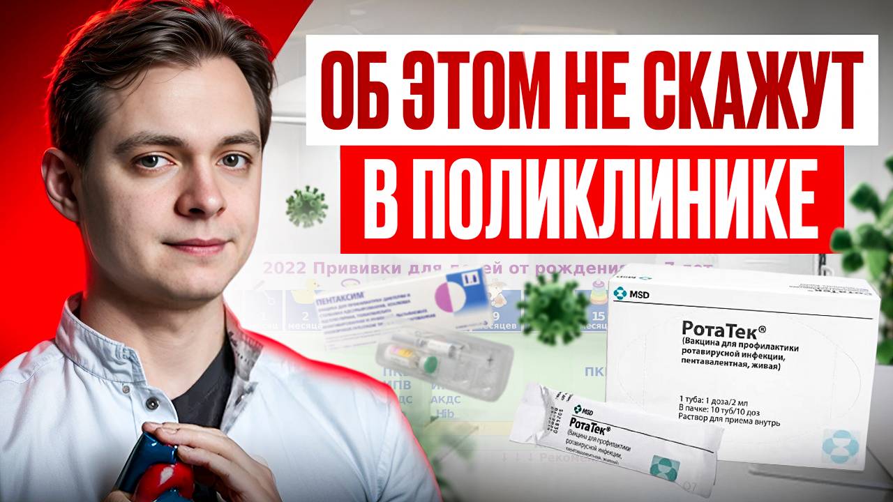 В этом видео я расскажу про инфекции, от которых мы можем защититься, благодаря вакцинации. Сделаю полный разбор всех вакцин. Даже поделюсь, что скрывают врачи, в частности про прививку от ротавируса. Изучим подробнее календарь прививок для детей. На мой взгляд, прививки очень важны для защиты детей и повышения их иммунитета. Тайм-коды: 00:00 Вступление 00:47 Виды вакцинации. Календарь прививок 03:05 БЦЖ. Туберкулез 04:26 Гепатит B 05:00 Пневмококк. Превенар 05:52 Ротавирус. РотаТек. Рота-V-Эйд 06:56 Коклюш, Дифтерия, Столбняк, АКДС. Пентаксим 08:20 Полиомиелит. Капли или укол 09:56 Гемофильная палочка 10:28 Менингококк. Менактра 12:10 Ветряная оспа. Ветрянка 12:49 Корь, Краснуха, Паротит. Вактривир. MMR-2 14:19 Гепатит А. Хаврикс. Альгавак 15:46 Грипп. 16:53 Клещевой Энцефалит 18:13 Вирус папилломы человека. ВПЧ. Гардасил