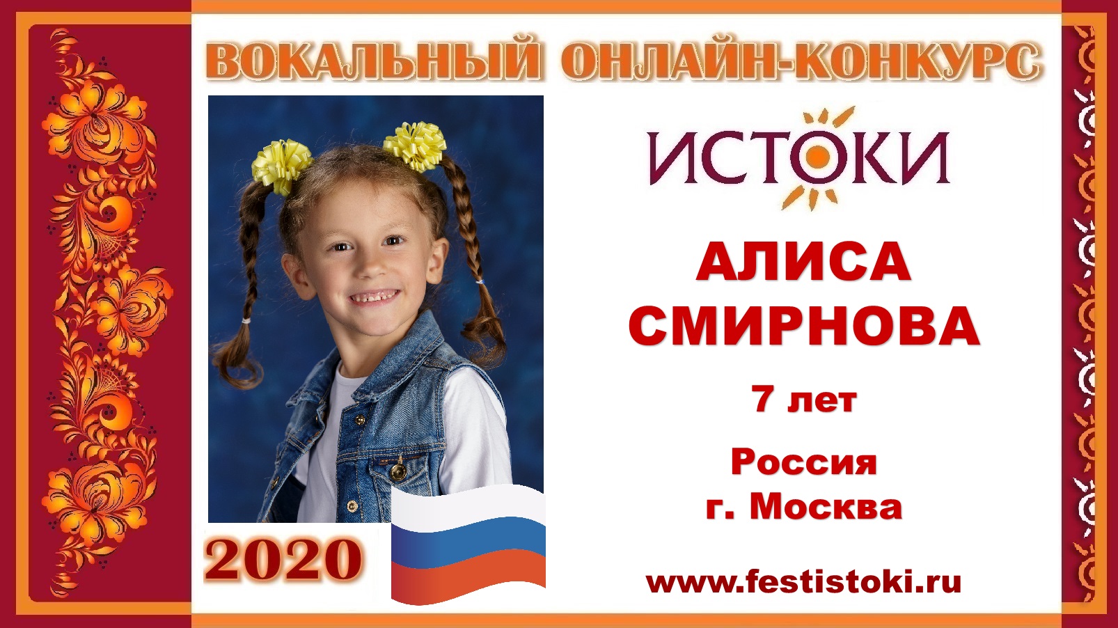 АЛИСА СМИРНОВА, 7 лет (Россия, г. Москва). "Гармонь моя"