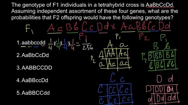 How to find genotypes frequencies when crossing tetra-hybrid parents