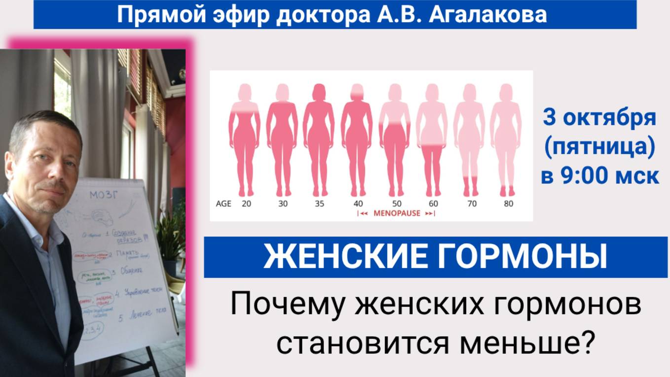 3 октября, в 9:00 мск, доктор А.В. Агалаков проведёт эфир на тему: "ЖЕНСКИЕ ГОРМОНЫ. ПОЧЕМУ ИХ СТАН