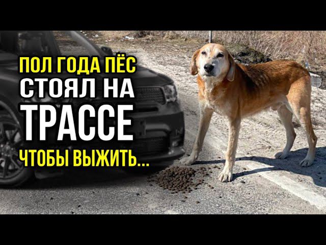 Истощенный Гончий пол года простоял на трассе в ожидании спасения