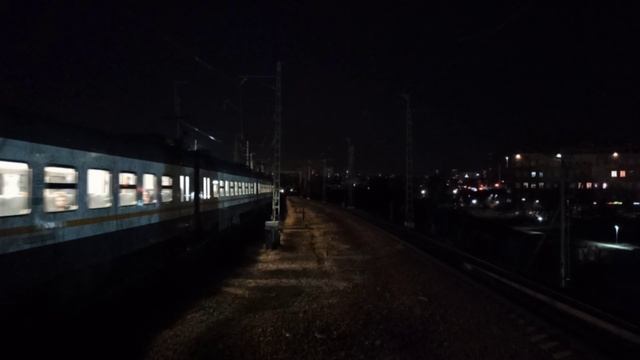Ночная электричка прибывает на медленной скорости платформа D1 Окружная|Московский транспорт