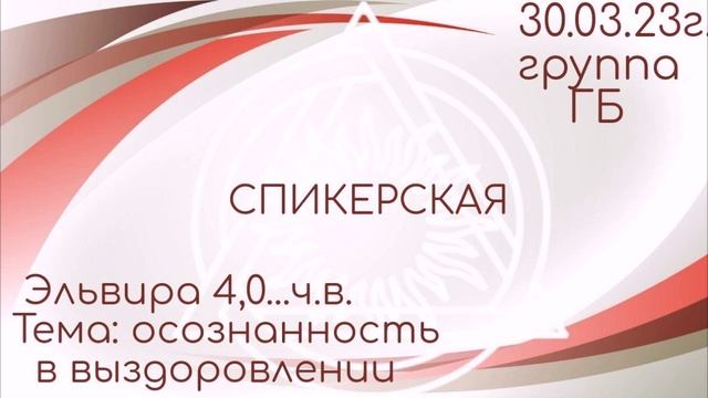 30.03.23г. спикерская DAA на группе ГБ. Эльвира 4,0... тема: осознанность в выздоровлении.