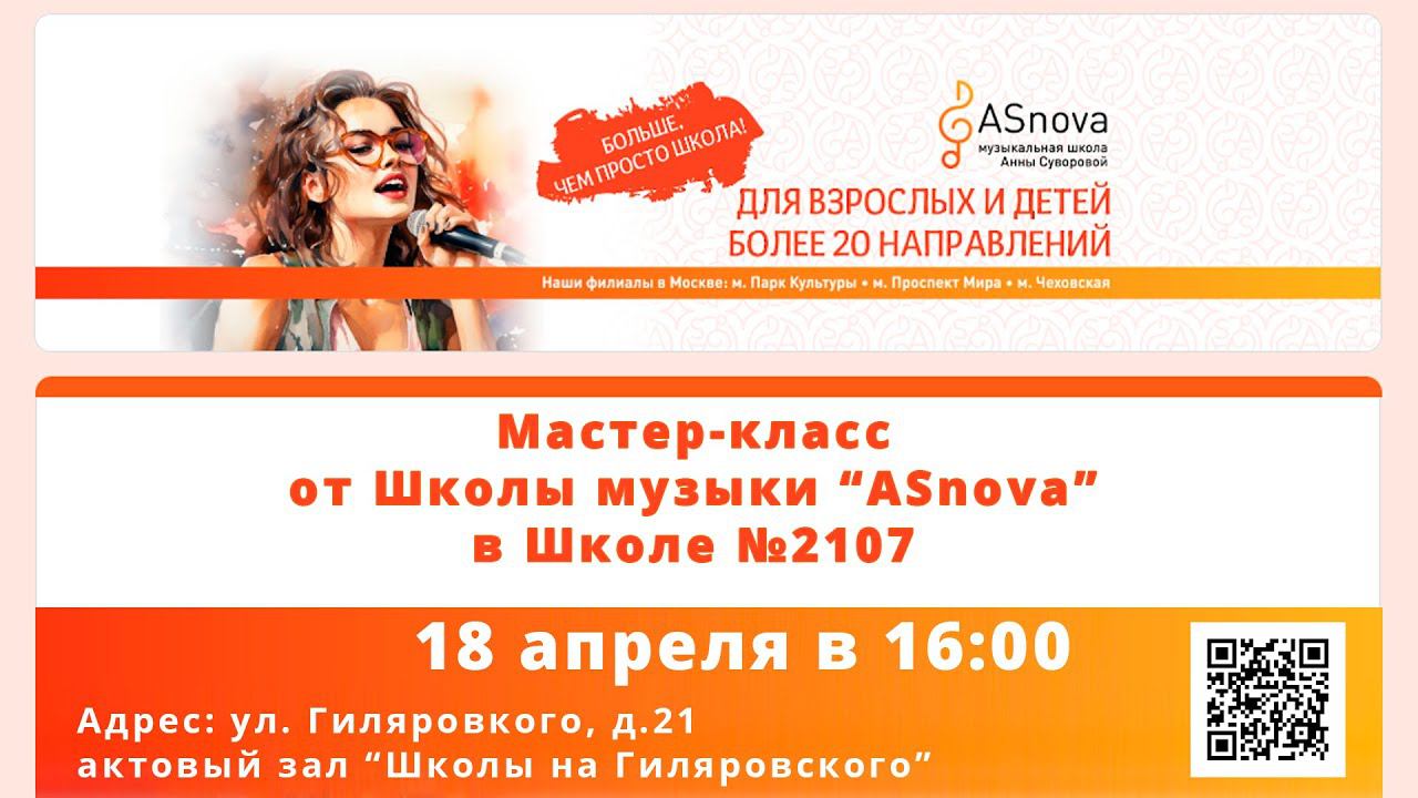 АНОНС / Мастер-класс от Школы музыки “ASnova” в Школе №2107