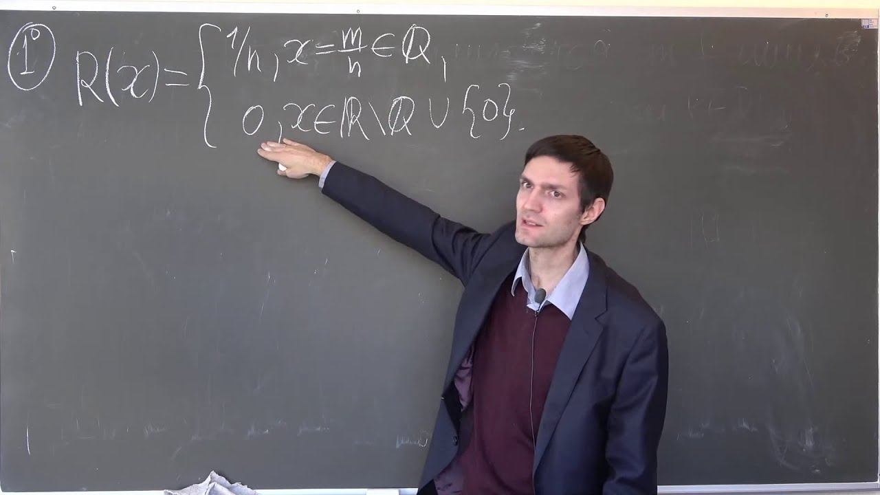 00:00 - Вводное слово 2:24 - Утверждение (если значение интегрируемой функции изменить на конечном множестве точек, то интегрируемость при этом не нарушится) 5:12 - Доказательство Утверждения 11:35 - Пример 1 14:04 - Доказательство (интегрируемость функции Римана) 24:42 - Определение (множество меры 0 по Лебегу) Upd. Правильнее говорить "не более, чем счётное" 27:48 - Теорема (критерий Лебега интегрируемости функции по Риману) 32:03 - Первое свойство интеграла Римана (свойство сужения) 33:58 - Доказательство свойства сужения 40:21 - Свойство 2 (аддитивность интеграла относительно отрезков интегрирования) 44:10 - Доказательство свойства 2 53:37 - Замечание 56:20 - Следствие(интегрируемость функции f на отрезке, содержащем точки a1,a2,..., an 58:43 - Свойство 3 (линейность интеграла) 1:01:24 - Доказательство линейности интеграла 1:04:52 - Свойство 4 (интегрируемость произведения) 1:07:36 - Доказательство интегрируемости произведения 1:18:14 - Свойство 5 (монотонность интеграла) 1:19:54 - Доказательство монотонности интеграла 1:21:18 - Следствие 1(интеграл от функции f по отрезку [a,b] будет неотрицательным) 1:23:16 - Следствие 2(если в какой-то точке функция f строго положительна, то интеграл от a до b строго больше 0) 1:26:06 - Доказательство Следствия 2 1:31:07 - Свойство 6 (интегрируемость модуля) 1:32:40 - Доказательство интегрируемости модуля 1:37:56 - Пример 1 (модифицированная функция Дирихле)