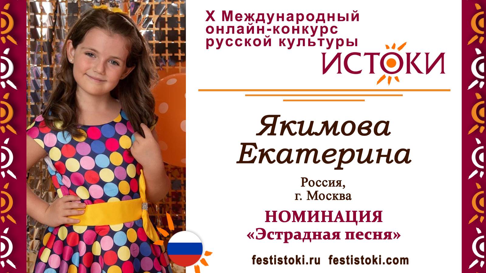 Участник Х Международного онлайн-конкурса русской культуры "Истоки". Номинация "Эстрадная песня". Песня "Отличница". Автор Александра Головченко. Сайт: festistoki.ru / festistoki.com E-mail: festistoki@mail.ru