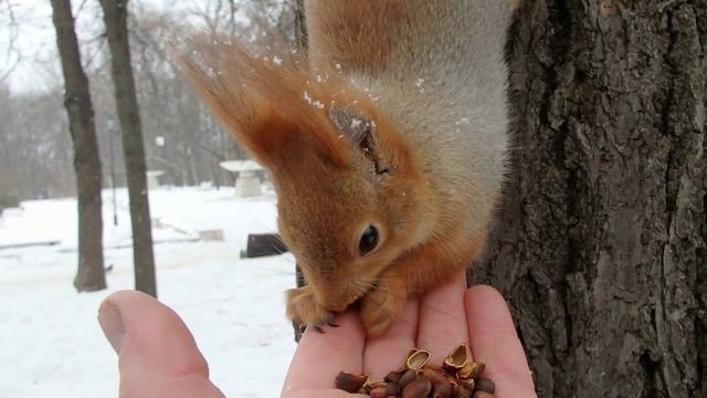 Кормлю белку, которая строила себе гнездо