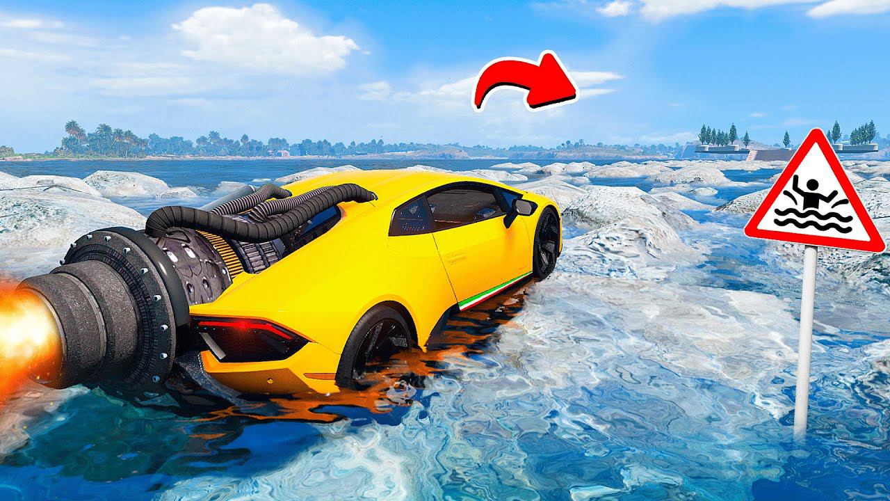 ПРОЕХАЛ ВОДНЫЕ КАМНИ на РЕАКТИВНОЙ ЛАМБОРГИНИ в ГТА 5 МОДЫ - ЭКСПЕРИМЕНТЫ в GTA 5 MODS