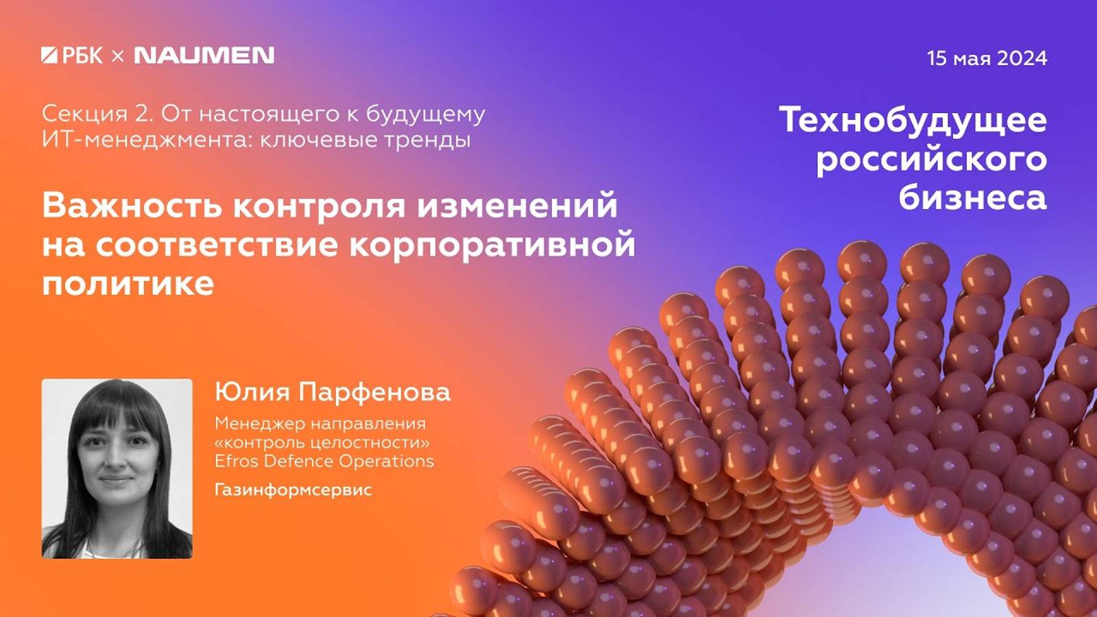 Важность контроля изменений на соответствие корпоративной политике Юлия Парфенова, менеджер направления «контроль целостности» Efros Defence Operations, Газинформсервис