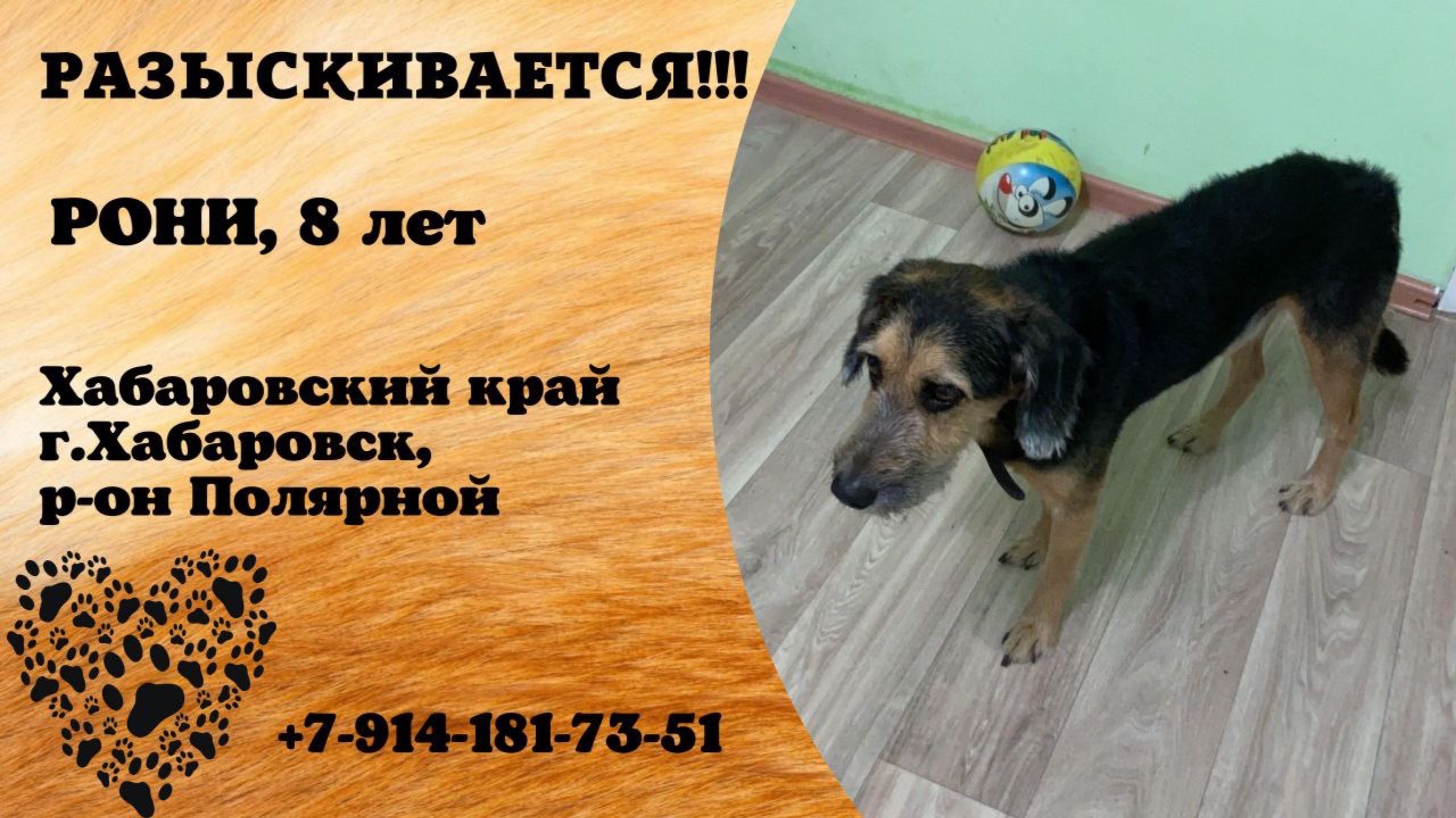 Пропала собака! РОНИ, 8 лет. Хабаровский край, г.Хабаровск.