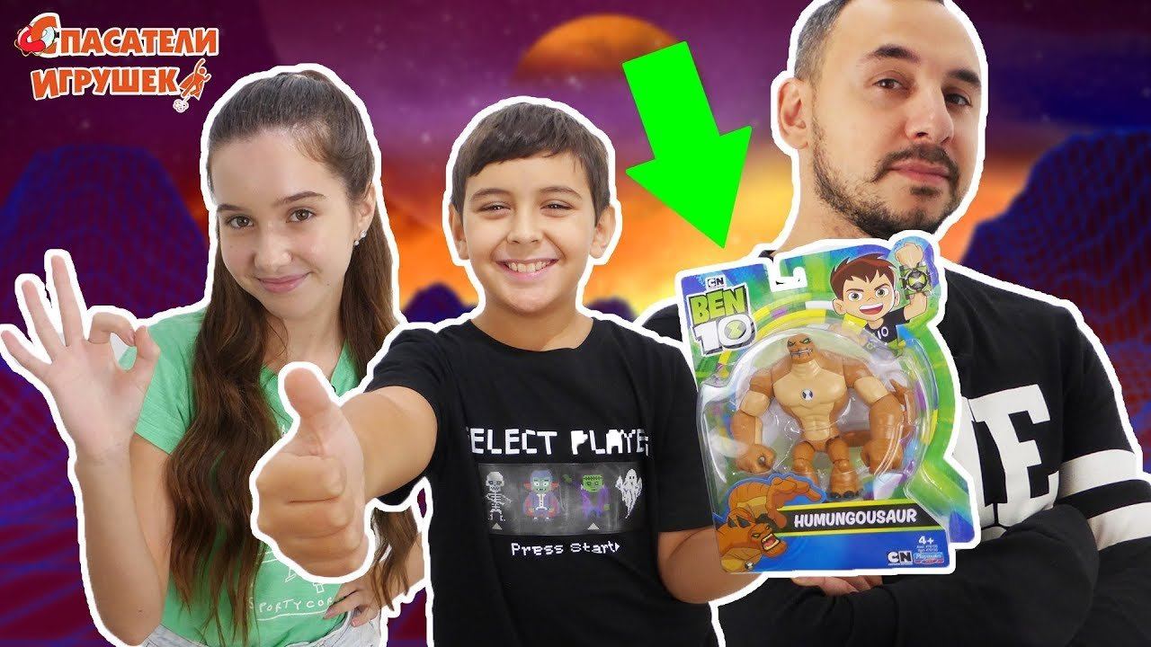 Распаковка Ben 10 Гумангозавр! Папа Роб, Ярик и Лера ловят динозавров!