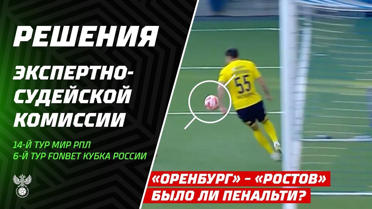 Решение ЭСК по матчам 14-го тура Мир РПЛ и 6-го тура FONBET Кубка России