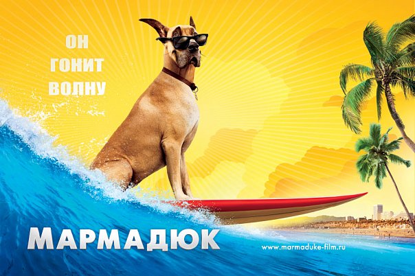 Мармадюк (Marmaduke) Легендарный дрессировщик собак верит, что он может превратить Мармадьюка из недисциплинированного, но симпатичного пса в первого датского дога, выигравшего чемпионат мира среди собак. Страна: США Жанр: комедия, мультфильм, приключения Режиссер: Марк А.З. Диппе, Янгки Ли, Фил Ниббелинк В главных ролях: Пит Дэвидсон, Дж.К. Симмонс Продолжительность: 88 мин.