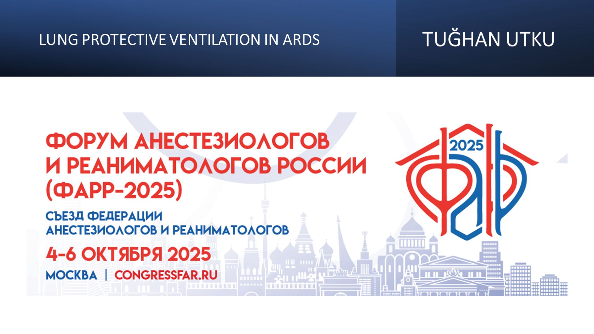 Видеозапись ФАРР-2024, XXIII съезд Федерации анестезиологов и реаниматологов 04-06 октября 2025, Москва. Tuğhan Utku "Lung protective ventilation in ARDS" Информация, размещенная на канале, предназначена исключительно для медицинских специалистов