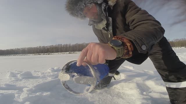 На ледобур диаметром 150 мм установлено кольцо, облегчающее процесс бурения смерзшихся лунок.