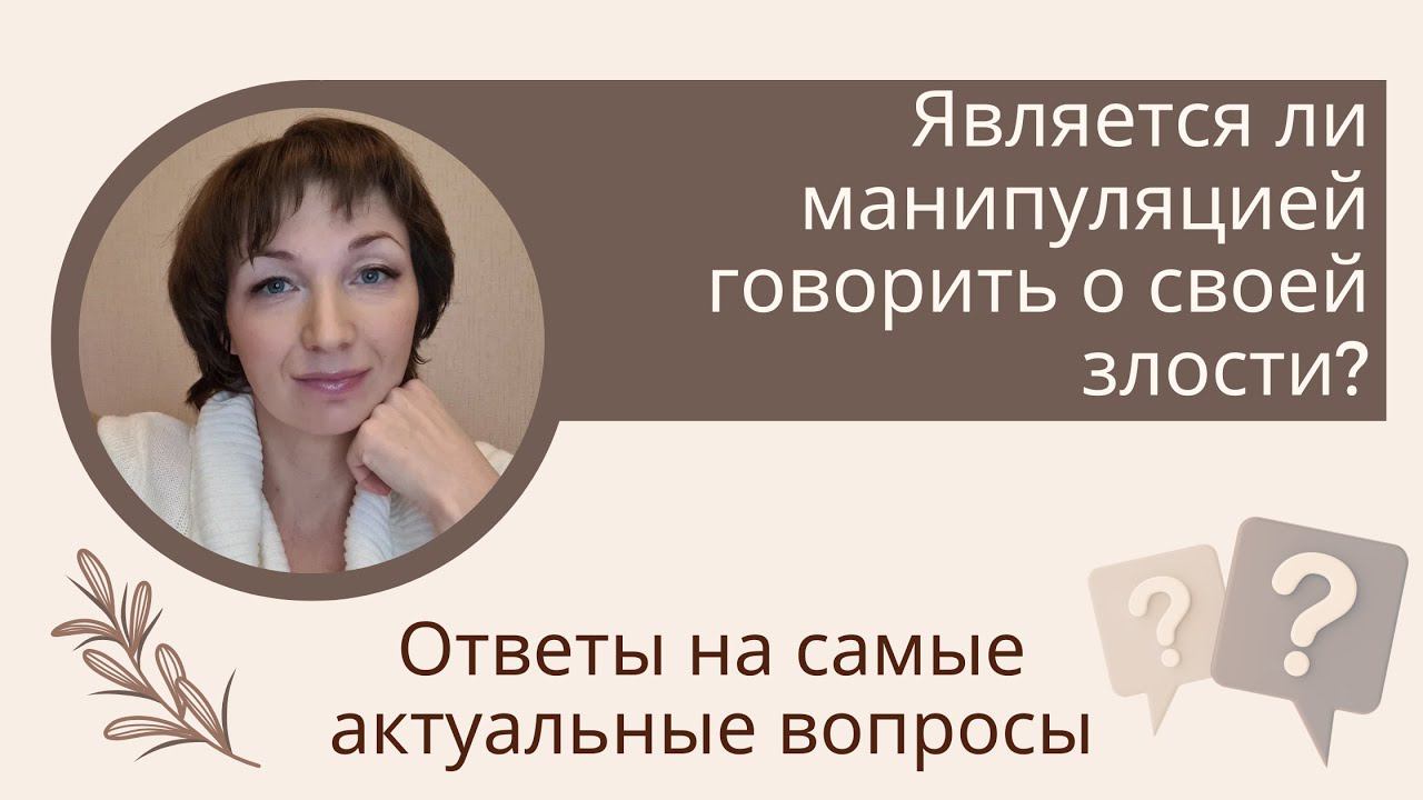 Является ли манипуляцией говорить о своей злости? Подписывайся на канал, чтобы вместе читать следующую важную и полезную книгу: https://t.me/kinder_psy Остальные ссылки в интернете: Курс Психотерапия для Себя: https://kinder-psy.com/online-courses... Что такое Школа для Родителей: http://parents-kinder-psy.com Подробнее о Юлии и записаться на приём: kinder-psy.com Полезные статьи VK: https://vk.com/juliekononova... Статьи о детской и взрослой психологии: http://parents-kinder-psy.com/blog Ваш клинический психолог / Когнитивно-поведенческий психотерапевт Юлия Кононова.