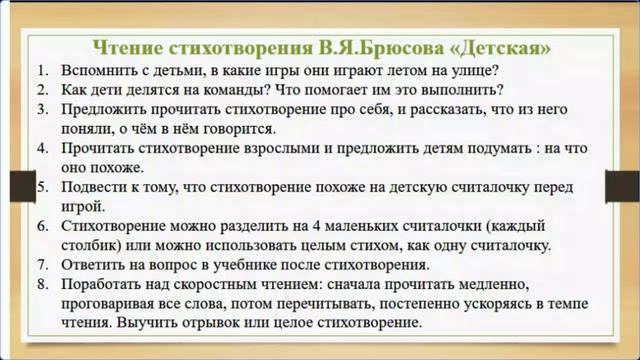 Урок литературного чтения, 4 класс, тема «В.Я. Брюсов «Опять сон», «Детская». С.А. Есенин «Бабушкины сказки», учитель Нагорная Т.В.