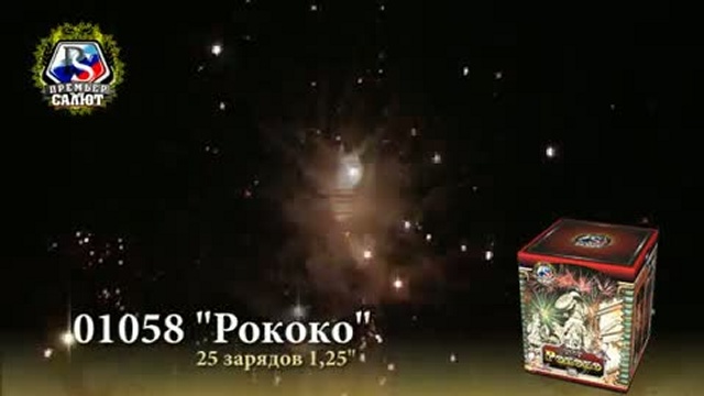Артикул: 01058 Кол-во зарядов: 25 шт. Калибр: 1.2 " Время работы: 26 с. Высота подъёма: 30 м. Эффект: Двухуровневый эффект: на нижнем уровне золотой бурак с синими звездами, на верхнем уровне - золотые кокосы. В финале залп нескольких зарядов.