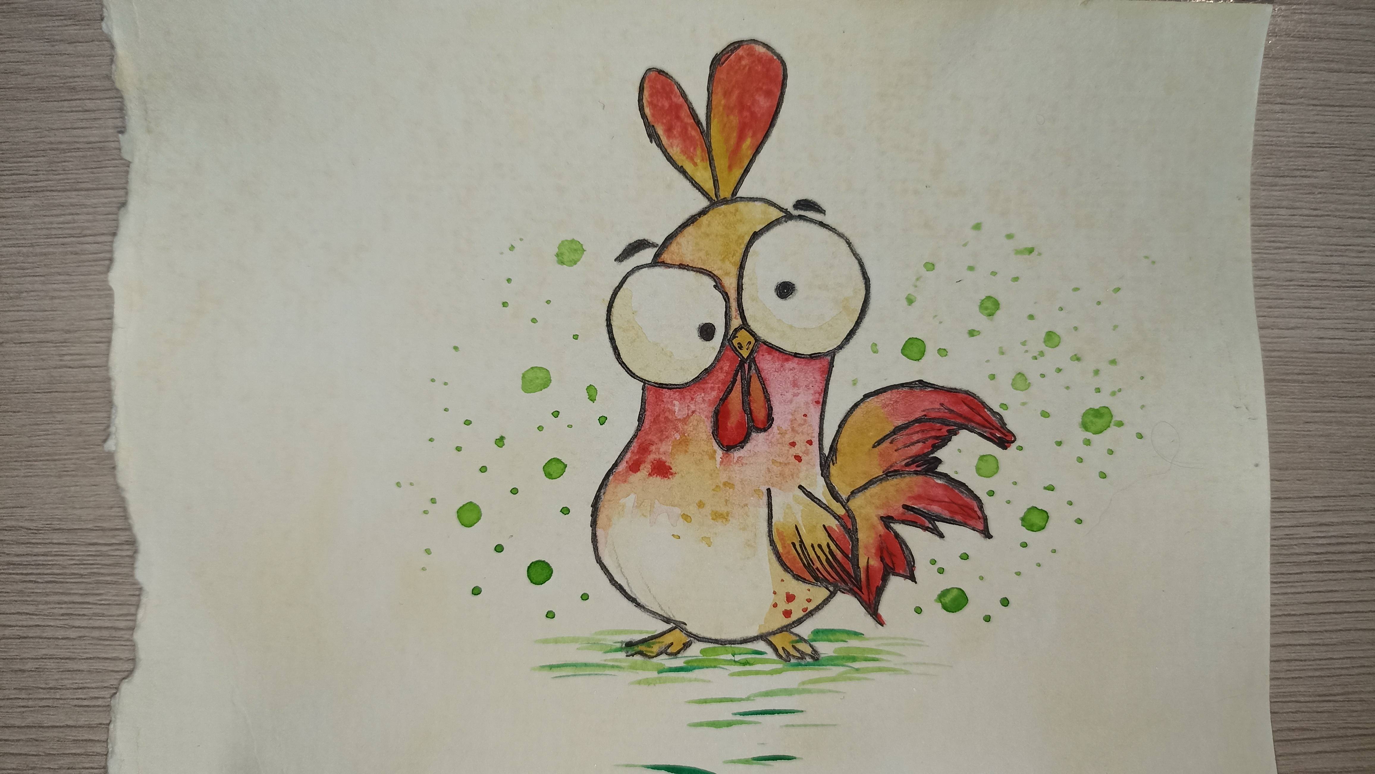 Рисунок акварелью / Петух