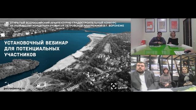 Воронеж. Петровская набережная. Конкурс на разработку концепции. 2019 27 сентября состоялся установочный вебинар для потенциальных участников Открытого всероссийского архитектурно-градостроительного конкурса на разработку концепции развития Петровской набережной в г. Воронеже. Спикеры рассказали о конкурсной процедуре, познакомили участников с информацией о территории и ответили на все вопросы. Спикеры: – Андрей Еренков, руководитель Департамента архитектуры и градостроительства –Воронежской области, член жюри; – Сергей Георгиевский, генеральный директор Агентства стратегического развития «ЦЕНТР», глава Организационного комитета конкурса; – Мария Седлецкая, ведущий аналитик Агентства стратегического развития «ЦЕНТР». Официальный сайт конкурса: https://petrovbereg.ru #агентствоцентр #centeragency #воронеж #рбк #центрвсми #рбкчерноземье #черноземье #конкурс #благоустройство #новости