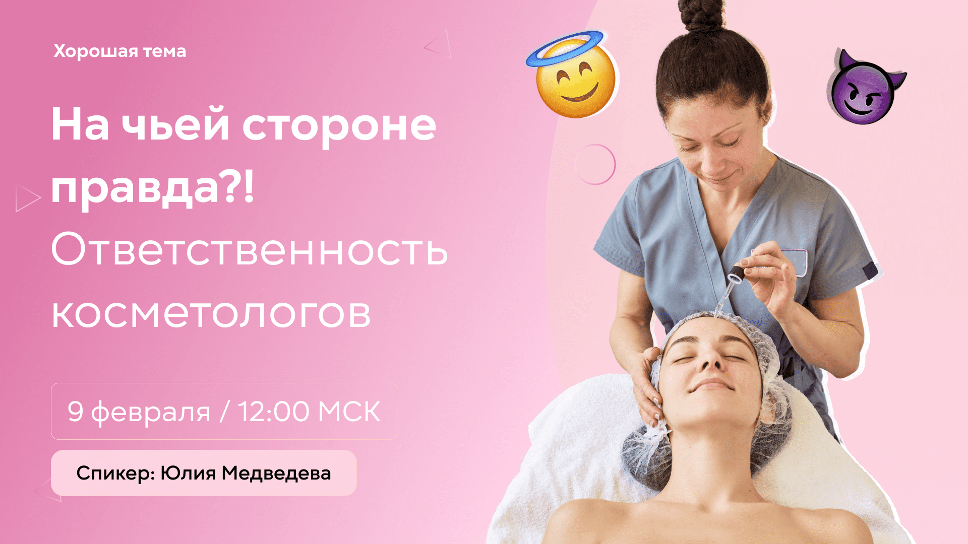? Мы знаем, что вам нужно в ближайший четверг. Ещё больше практичной и сконцентрированной информации о работе в сфере красоты! Мы вас услышали и подготовили новый вебинар. ✅ Спикер: Юлия Медведева, эксперт Национальной академии медицинского образования им. Н.А.Бородина ? В прямом эфире обсудим: — за что могут оштрафовать косметологов и эстетистов, — какие требования нужно соблюдать, чтобы избежать административной и уголовной ответственности, — реальные судебные дела с нерадивыми специалистами. ✅ Полезные ссылки: 1. Получить подарки можно до 16 февраля 2023 года - сертификат участника - памятка готовности к проверкам салонов красоты и косметологов - скидка 30 % всем слушателям вебинара на курс "Эстетическая косметология". Промокод придет вместе с другими подарками. Ссылка для получения: https://vk.cc/clr6L3 Интересует обучение? Программа курса: https://vk.cc/clrdsQ или по телефону 8 (800) 505-35-24 (по России бесплатно) 2. Приказ Минздрава России N 804н от 13.10.2017 «Об утверждении номенклатуры медицинских услуг» https://www.mgfoms.ru/documents/23024 3. Постановление Главного государственного санитарного врача РФ от 24 декабря 2020 г. № 44 "Об утверждении санитарных правил СП 2.1.3678 https://www.garant.ru/products/ipo/prime/doc/400063274/ 4. Статья 14.1. Осуществление предпринимательской деятельности без государственной регистрации или без специального разрешения (лицензии) https://base.garant.ru/12125267/4409e3d130a818a2b5323978ad10f4c3/ 5. УК РФ Статья 235. Незаконное осуществление медицинской деятельности или фармацевтической деятельности http://www.consultant.ru/document/cons_doc_LAW_10699/f753459fd7b189d1a8f6f269ddcaf8c3a5057043/ 6.Нарушение порядка постановки на учет в налоговом органе https://nkrfkod.ru/statja-116/ Мы в социальных сетях: Вконтакте - https://vk.com/horoshaya_tema Телеграм - https://t.me/horoshaya_tema Одноклассники - https://ok.ru/group/70000000869555